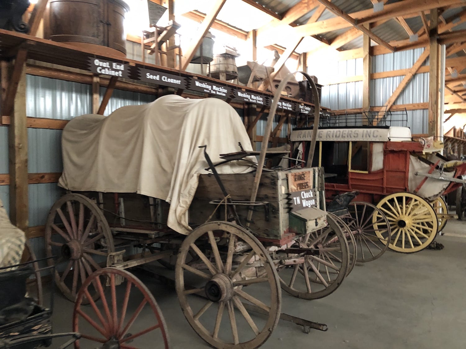 The largest building on the Museum’s acreage is the Wagon Depot where you can see an amazing collection of antique vehicles as well as collections of early office equipment and farm tools.