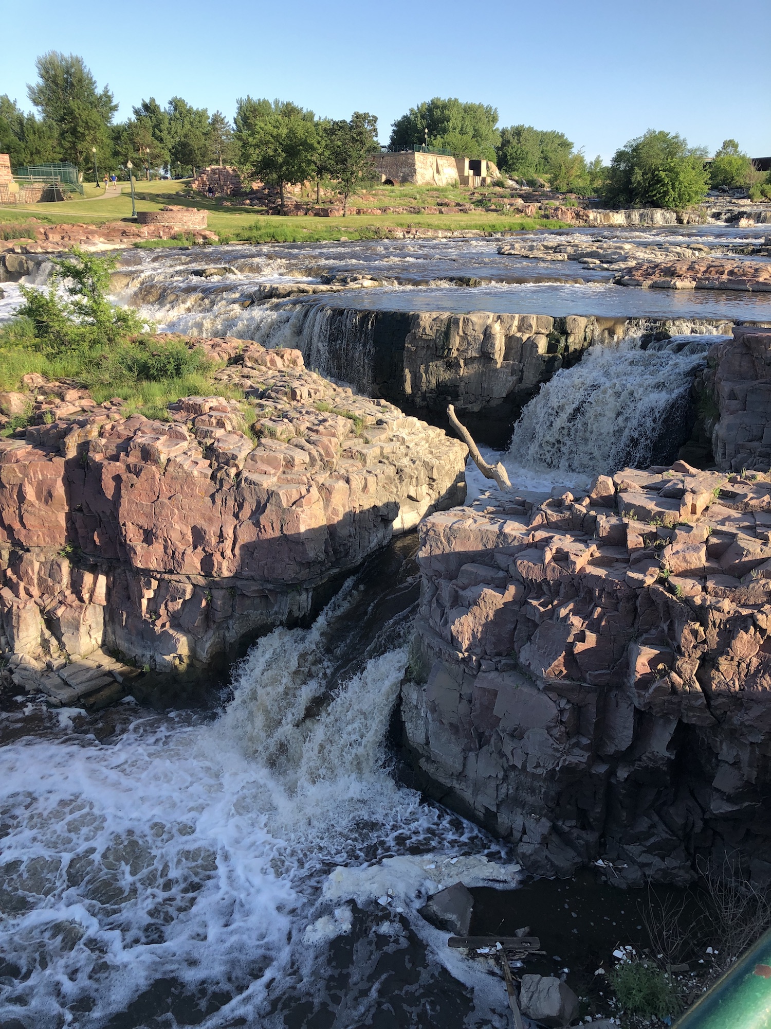 Drive one hour and end your road trip across South Dakota with a trip to the Sioux Falls city park – an amazing place to enjoy cascading waterfalls, picnic, and spend time with your family.